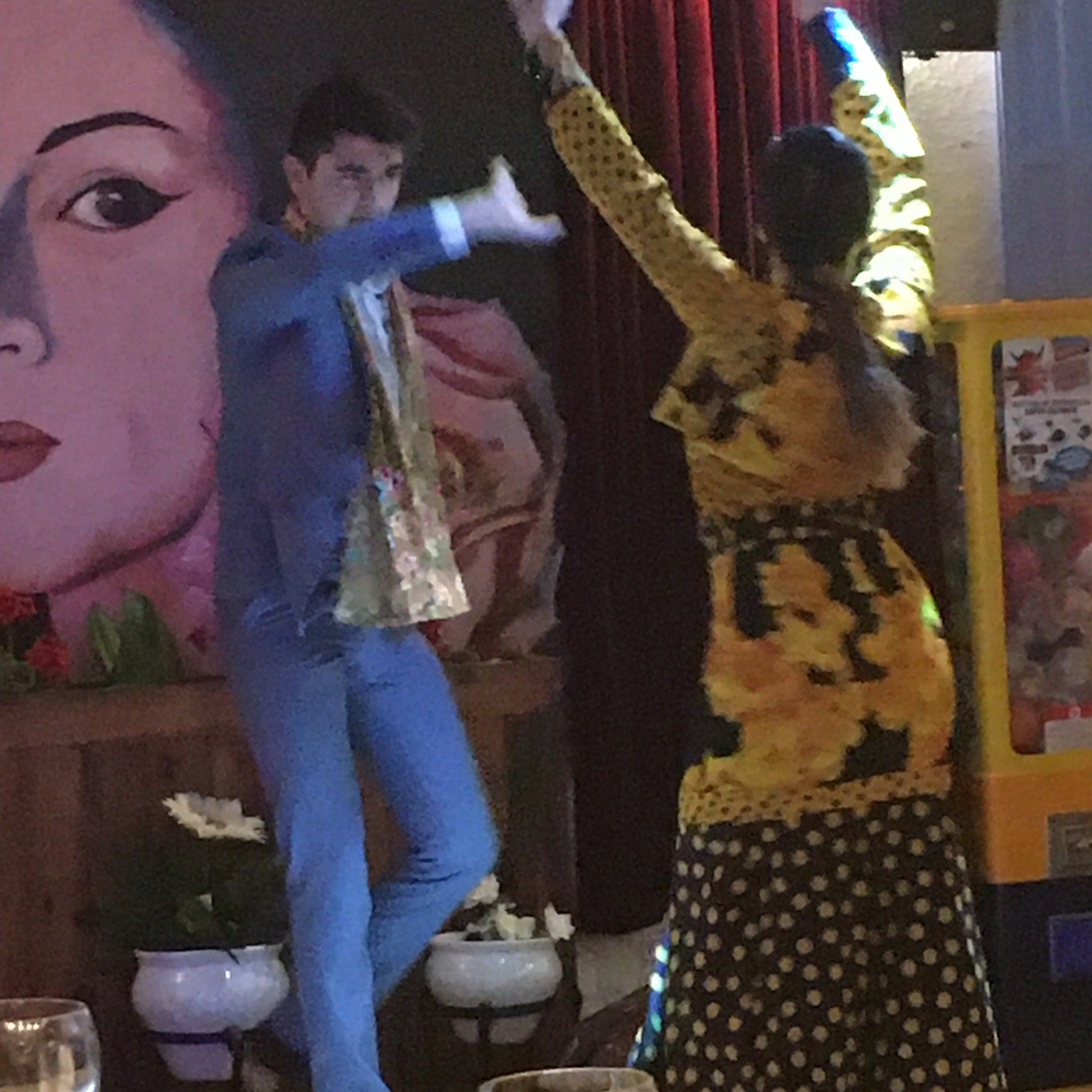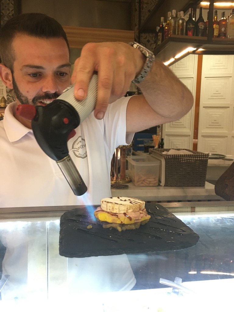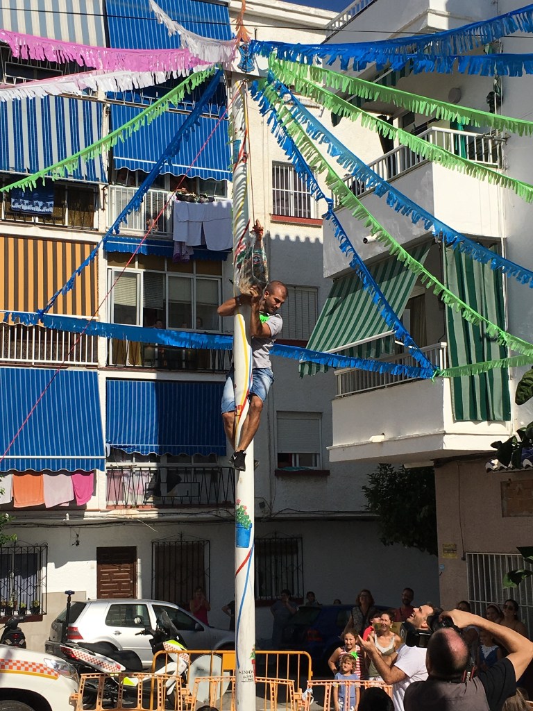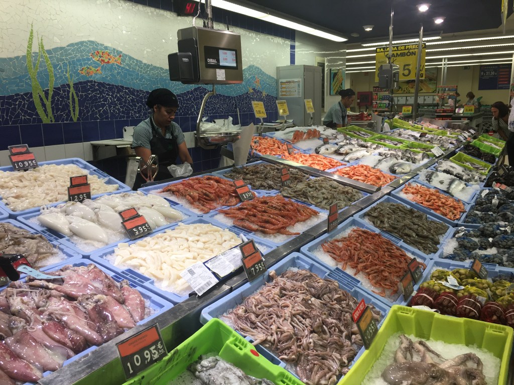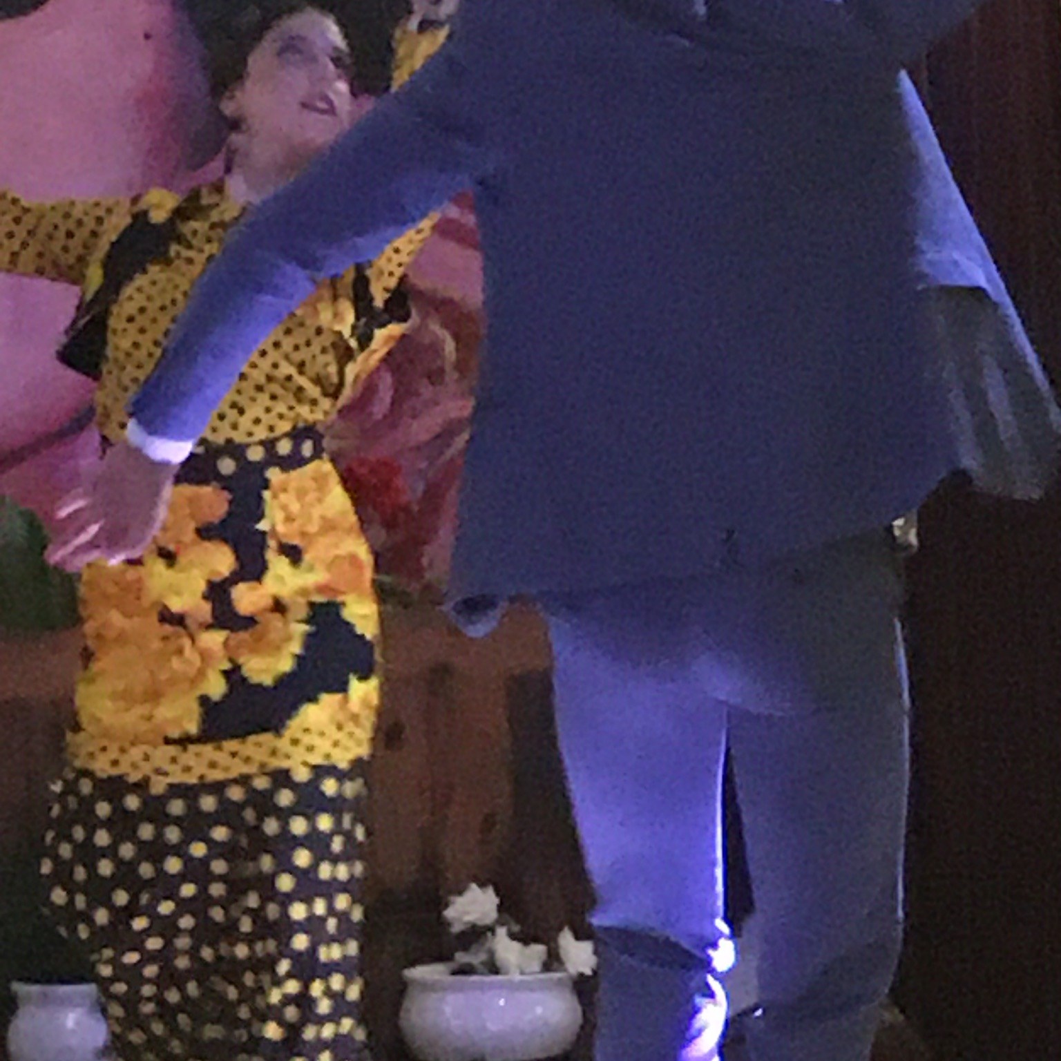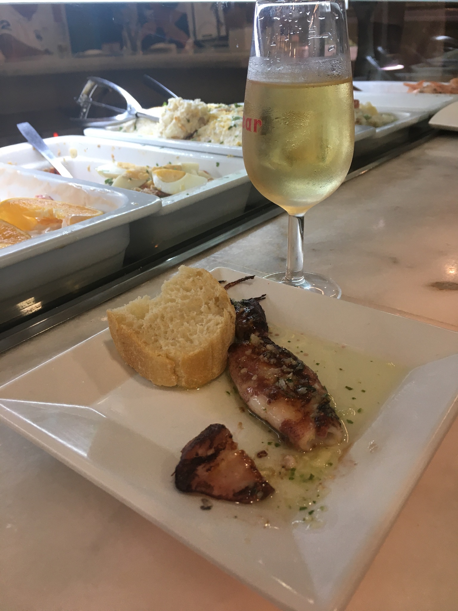 Sunday evening is Flamenco night at Sevillano on Calle Los Huertos. You can have dinner in the restaurant or do what we did, which was get there in good time and perch at a barrel with a view. Tapas are free with drinks and they are really good. We’d already been to Redondo fish bar – gambas, octopus, paella and small chicken skewer – so weren’t too hungry but managed an ensaladilla rusa, tortilla and cheese with our drinks. Flamenco was late starting but we were kept entertained by a Spanish couple at the next barrel who alternated between very full on PDAs and what seemed like threatening behaviour on his part as he leaned in close to her face and spoke quite aggressively. The guitarist wandered in and seemed rather drunk and his guitar could have done with a bit of a tune. Even my ears could detect it and Chris was cringing! The dancing, however, was excellent. One male, one female dancer, both young and very competent. As well as various individual and dances done together, the ‘fight off of the feet’ at the end of their segment was incredible. How do they manage to move their feet so quickly and respond to the challenge laid down by the other dancer?