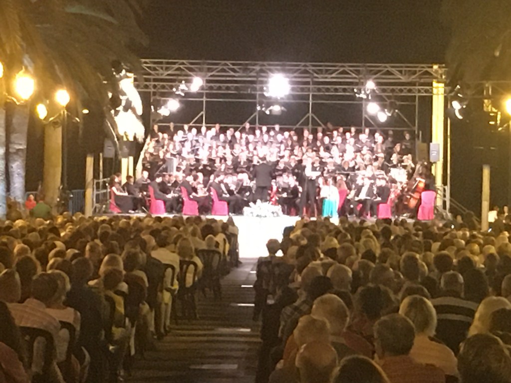 A bit of culture on offer over the weekend, starting with a Saturday night performance on the Balcon of Carmina Burana. Two large choirs, one local and one from Córdoba, joined with an orchestra from Granada to present this work and, as always, the people of Nerja came out to support the event. Chairs were set out along the whole length of the Balcon and there were lots of people standing too. Sadly the sound quality wasn’t great so we listened for a while then moved on.